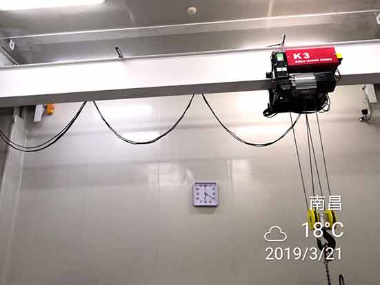 1、采用洁净电动葫芦。根据洁净室的使用条件,定制开发对应工作等级的洁净电动葫芦,防护等级可达到IP65,并采用防尘处理。