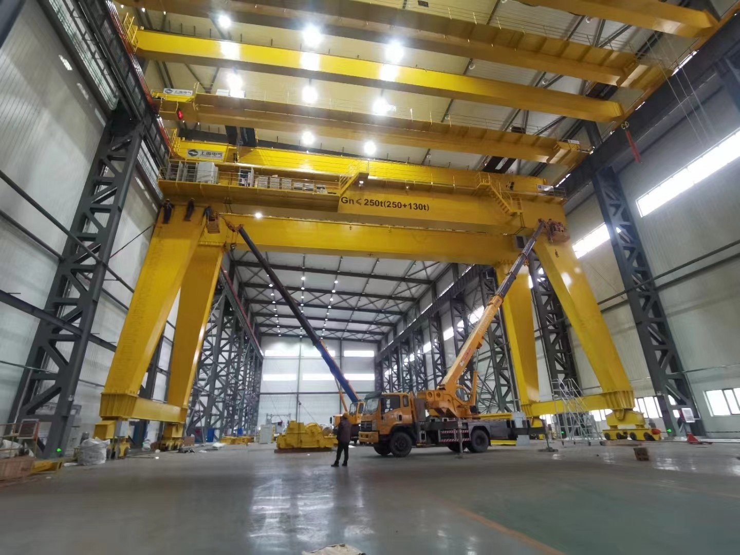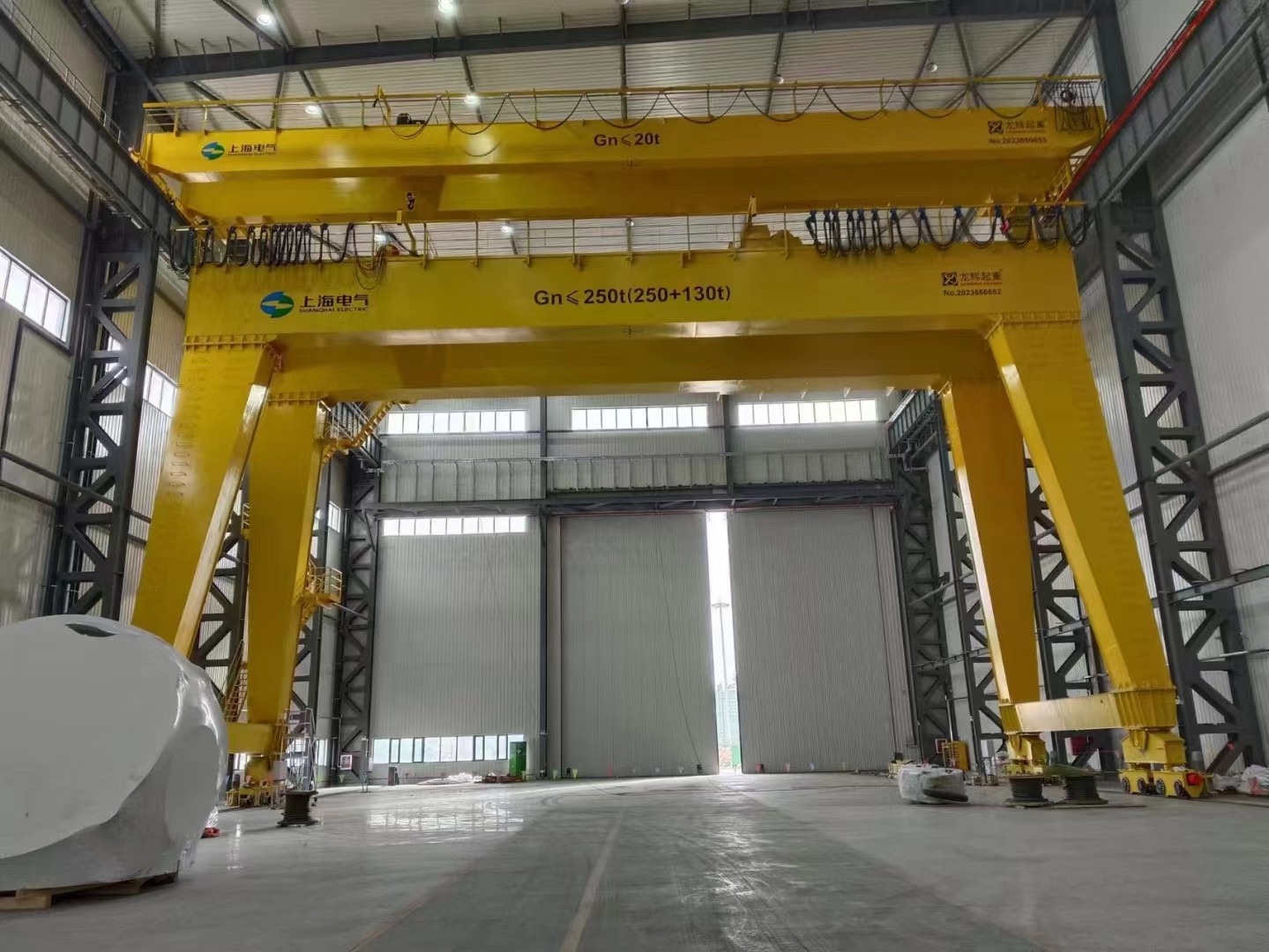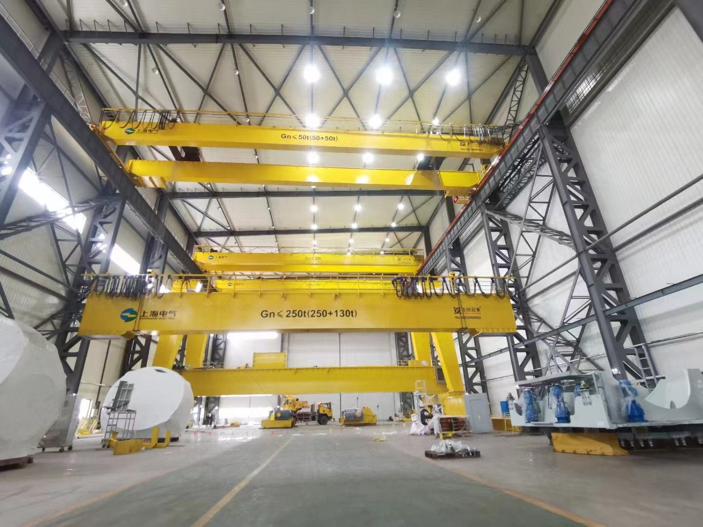 山东龙辉为上海电气集团安装QE型50t+50t桥式起重机,MG型250t+130t门式起重机交付使用